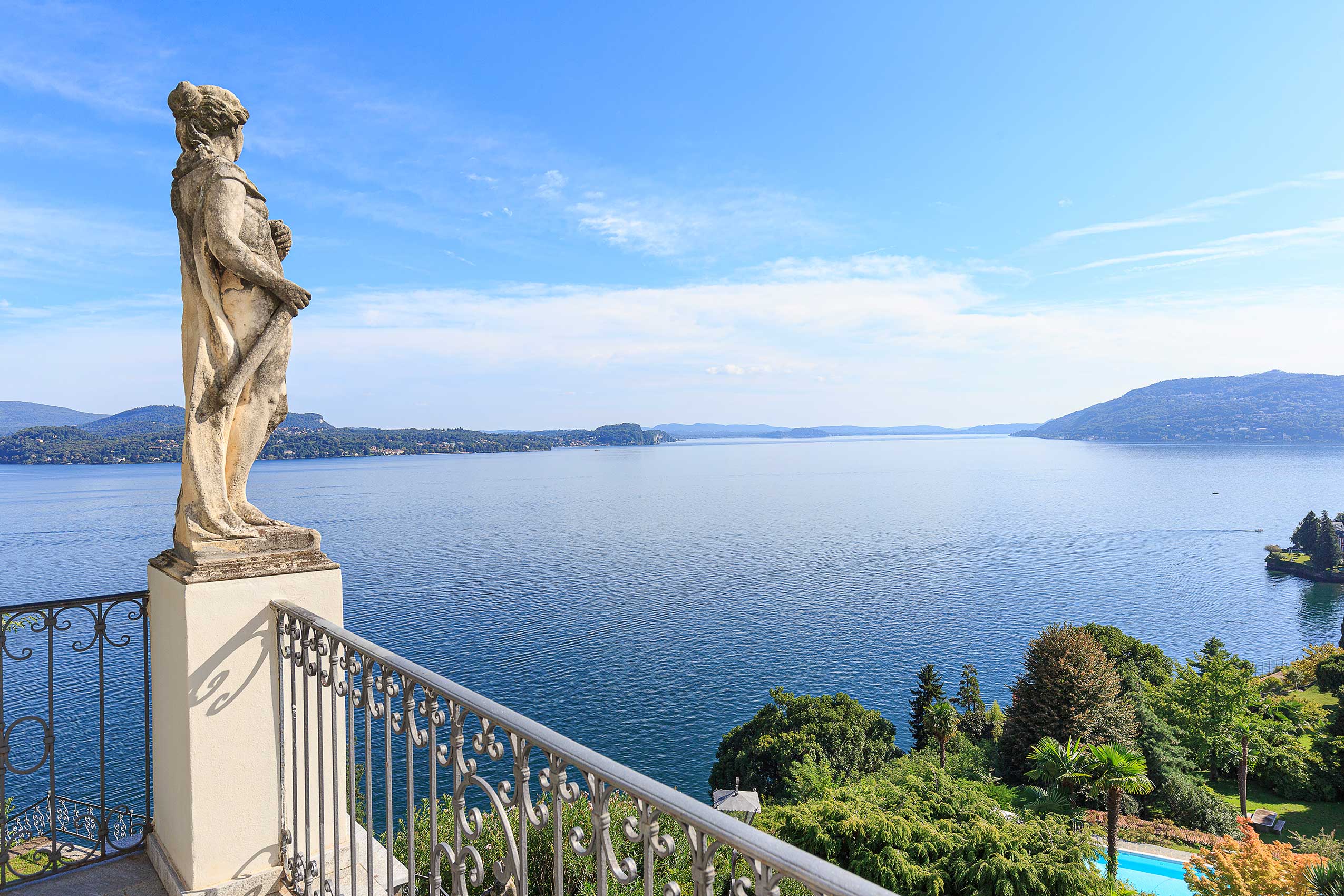 The extensive grounds are probably the largest you’ll find in any property by Lake Maggiore with incredible 180° views throughout the property. And the views only become more impressive as one climbs further up this three storey villa!
